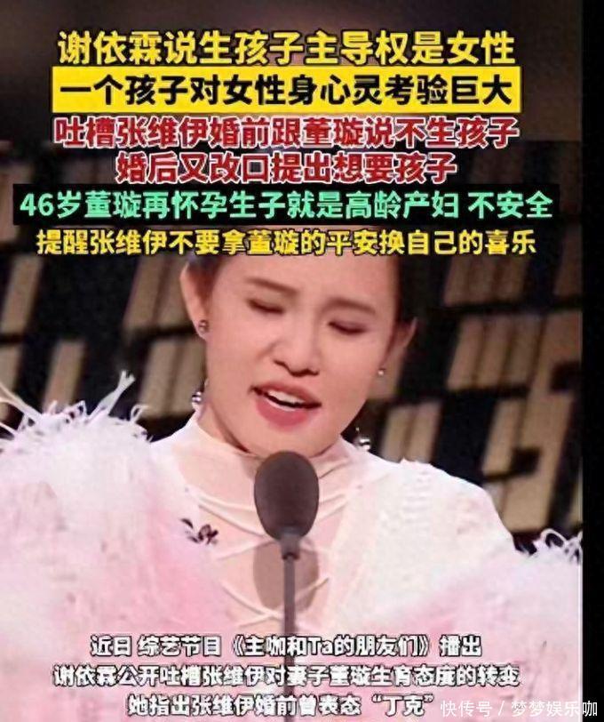 近日,在一档综艺节目中,女星谢依霖公开吐槽刚刚新婚不久的张维伊,也就是董璇的二婚丈夫,不满其婚前婚后两个样子,婚前他表示自己是“丁克”,不要孩子,婚后却在节目中给董璇施压,希望拥有两人共同孩子。